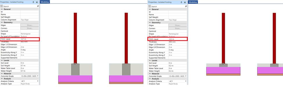 - Adjusting foundation levels: Allows changing foundation levels for all foundation types after they have been created, with automatic recalculation of the pedestal heights and soil overburden & hydrostatic pressures for consistent results. The earlier versions only allowed specifying the foundation levels during the creation of foundations.