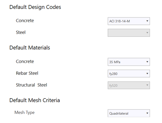 - Workflow Simplification: Introduces user-defined property defaults with automatic assignments for design codes, material, soil properties, design options, and more. This significantly reduces the manual operations required in previous versions.