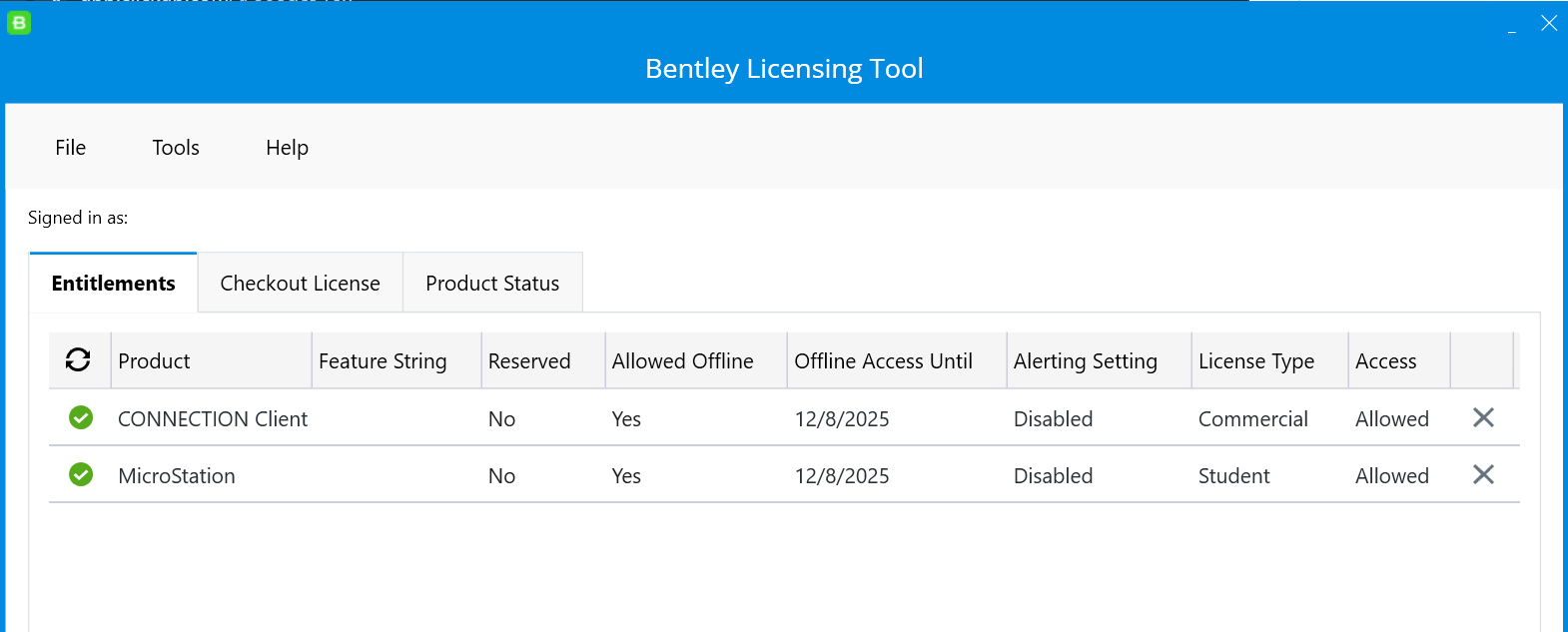 - Close and relaunch your chosen software and the CONNECTION Client. Recheck the License Tool manager in the CONNECTION Client and you should now see the License Type set as Student as in the image on Step 2 above. This means the correct access is now active and you can use your software application.