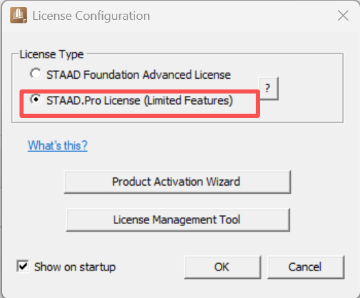 用户已购买 STAAD.Pro 或 STAAD.Pro Advanced 许可,但未单独购买 STAAD Foundation Advanced 许可。在启动 STAAD Foundation Advanced 软件时,需要知道如何使用现有许可来启动并运行该软件。