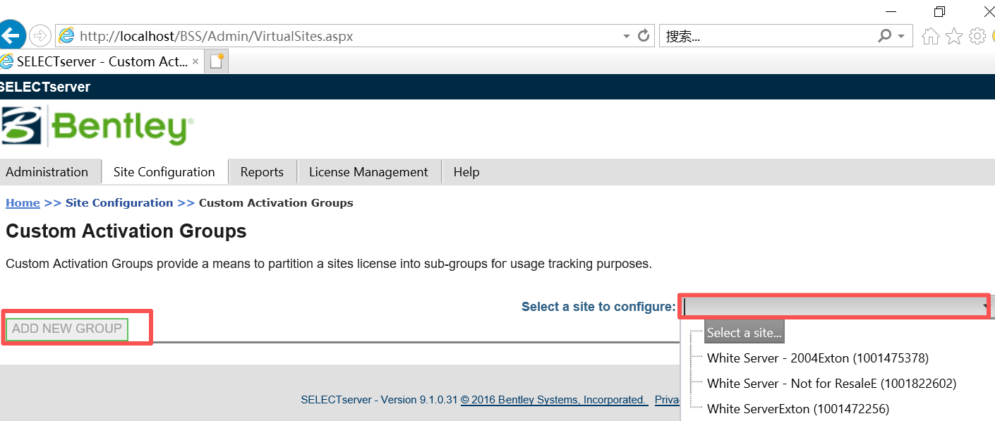 如果存在多个站点, 请在右侧选中特定站点, 然后再点击左侧的添加新租(ADD NEW GROUP)按钮。