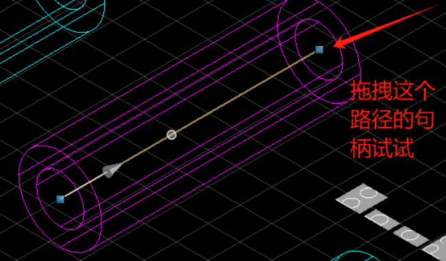 2. 点击这个路径的小图标后,路径就会被高亮,然后拖拽路径两侧的图柄就可以修改路径: