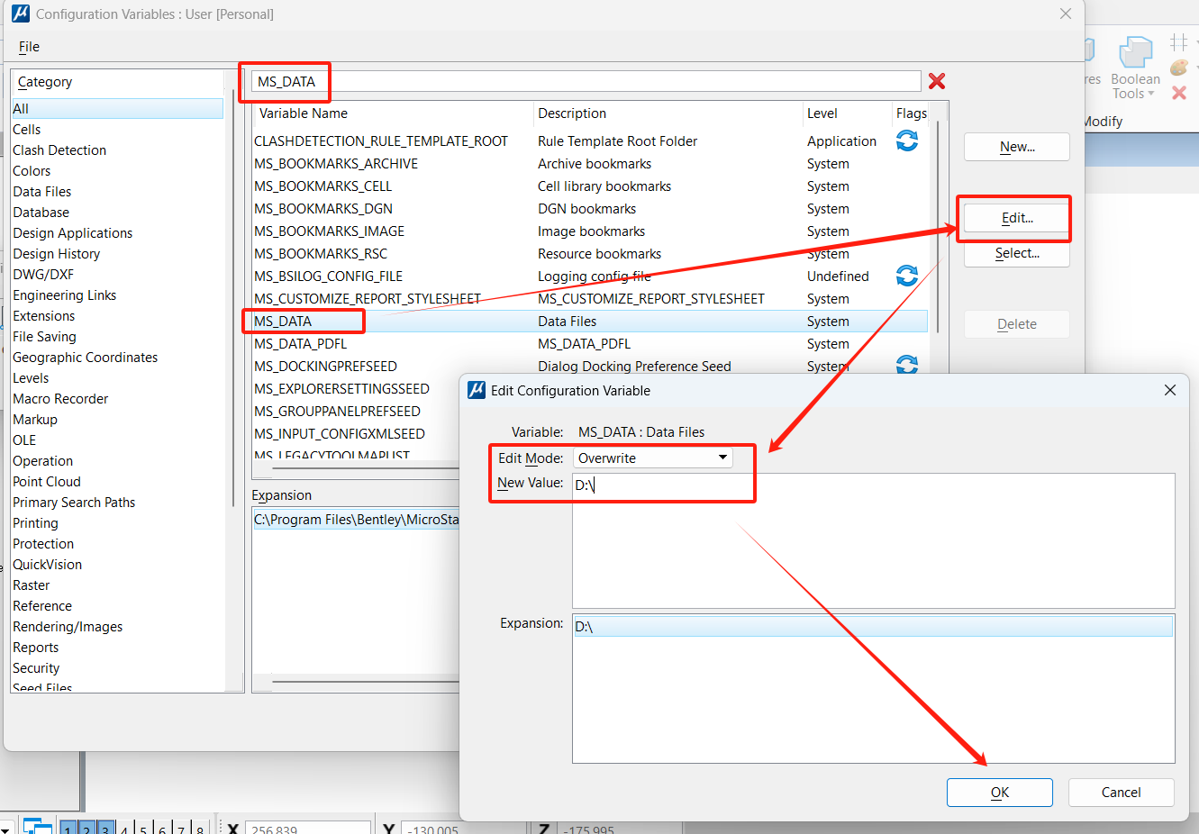 找到MS_DATA,点击Edit编辑按钮,重新定义一个路径,比如D盘根目录下:D:\