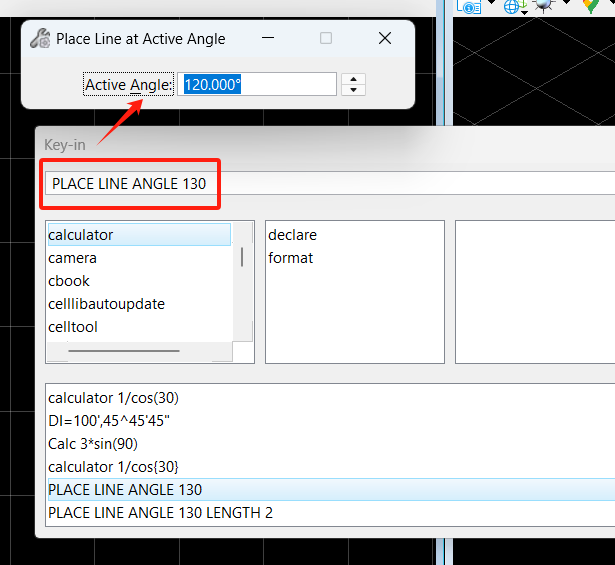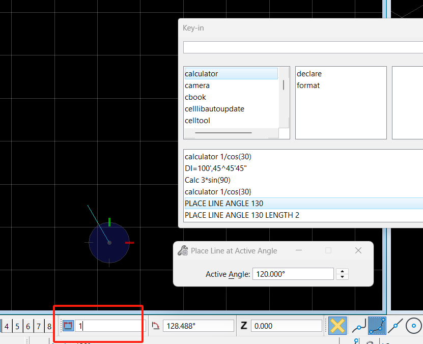 1.输入key-in:Place Line Angle 120 调出Place Line At Active Angle工具: