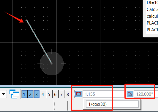 那么可以通过在AccuDraw中输入上述计算公式:1/cos(30)来一笔画出红色的斜线: