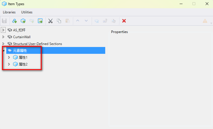 在OBD如果为元素只添加了一个项类型,在发布imodel的时候是无法带出到i.dgn文件中的,目前可以通过以下方法暂时解决:在一个项类型库中定义两个项类型,如下图所示,这时再发布imode,在i.dgn文件中就可以看到我们添加的项类型属性了