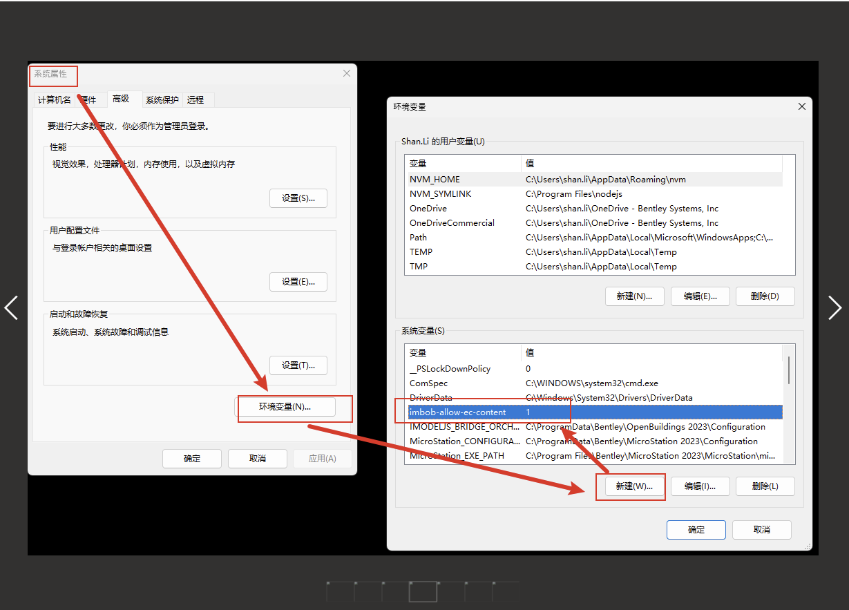 另外,如果在使用itwin snapshot工具导出.bim格式的文件时,如果发现无法带出项类型的问题,请在电脑系统属性->环境变量中添加该变量:imbob-allow-ec-content=1。然后再进行导出即可看到项类型属性