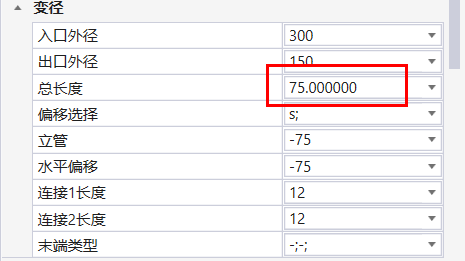 在设置此角度之后,在绘制管道的时候,软件会根据变径两端的管径自动计算出变径的一个长度作为连接件的总长度。