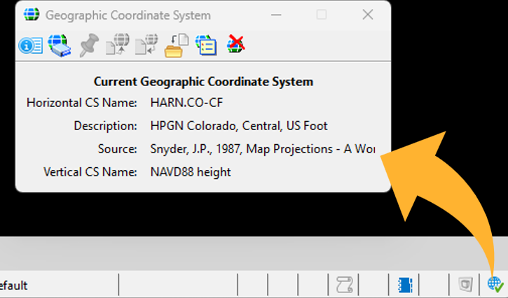 将光标悬停在图标上,即可显示分配给当前模型的地理坐标系(GCS)名称。