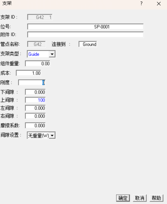 如下图中所示:无论间隙设置、摩擦系数值如何,管道在承载方向(即垂直于管道的方向)上都不会受到支撑力。