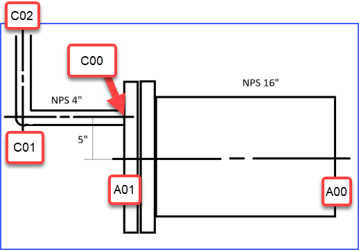 - First model the large diameter pipe as needed (ex. A00 to A01).