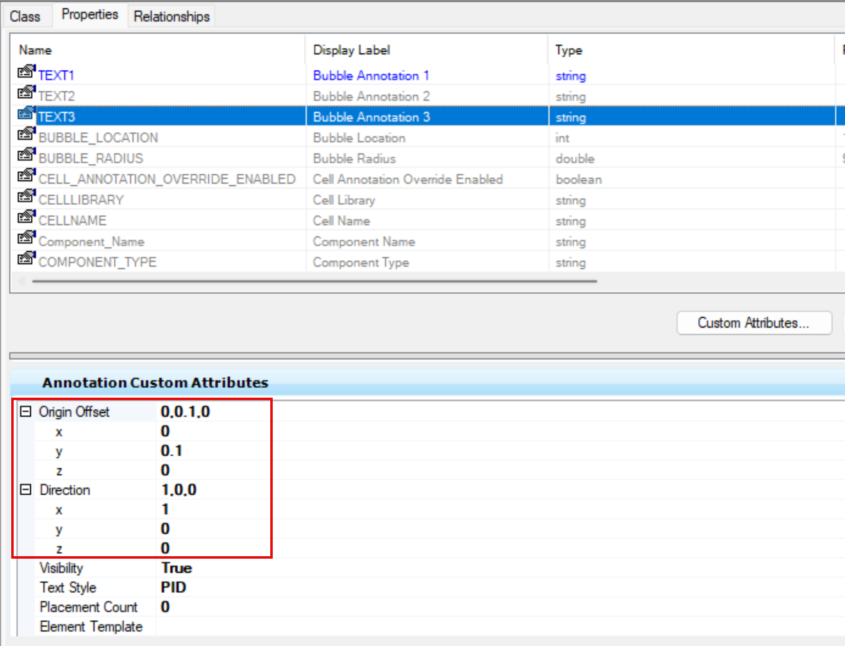 注意:可以修改坐标控制 TEXT3 位置和 Visibility 控制 TEXT3 是否显示,为了不影响默认注释,此处修改为 False 不显示 TEXT3