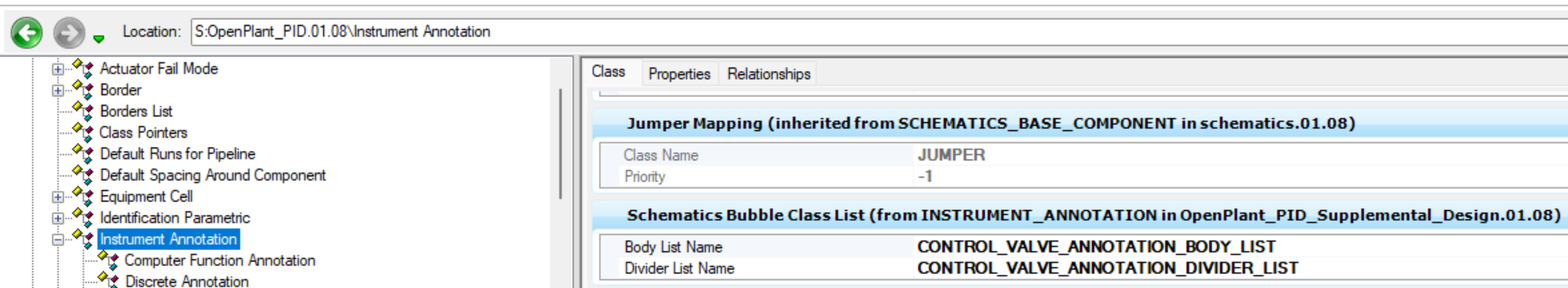 参考路径:C:\ProgramData\Bentley\OpenPlant CONNECT Edition\Configuration\WorkSpaces\OpenPlantExample\WorkSets\Metric\Standards\OpenPlant\Schemas