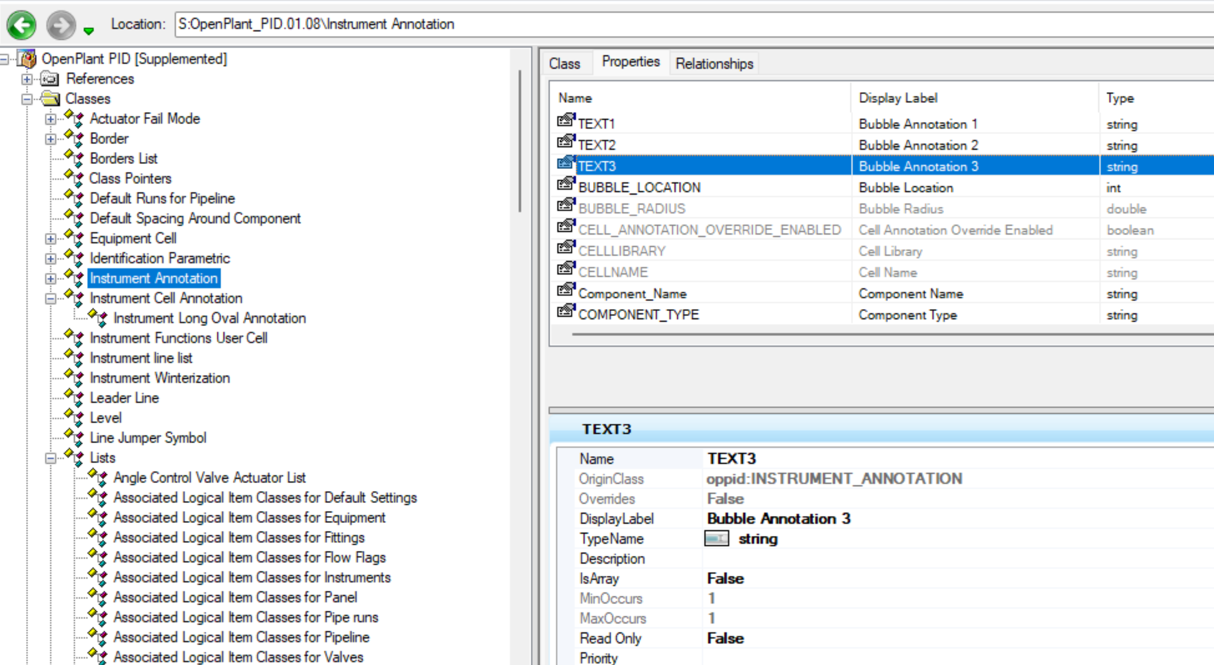 3、导航到 INSTRUMENT_ANNOTATION 类,切换到 Properties 看到 TEXT1 和 TEXT2,然后复制 TEXT1 或 TEXT2 后 Name 修改为 TEXT3,见下图: