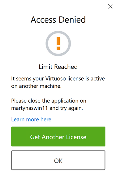 若尝试在另一台设备上打开产品软件,将会收到以下提示: