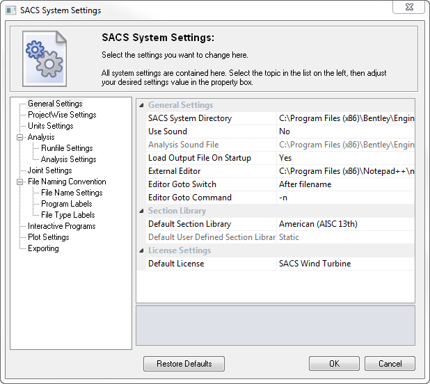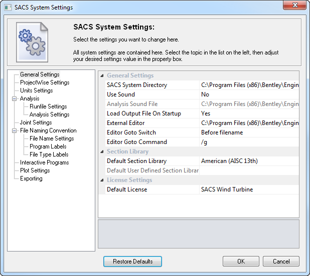 Open the SACS Executive and navigate to the General Setting in SACS Settings. Your setting should look something like this: