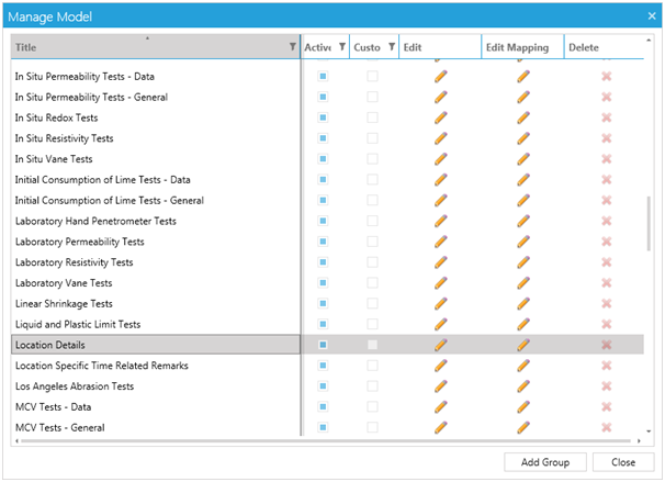 Click 'Save' and you'll be returned to the 'Edit Group' interface. Click 'Save' from here and then 'Close'. In order to allow these structural changes to be applied HoleBASE SI will now need to reload the project (close the project and reopen if it doesn't happen automatically).