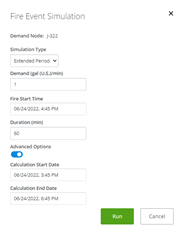 Duration: duration of the fire event (duration for which the flow demand will be applied)