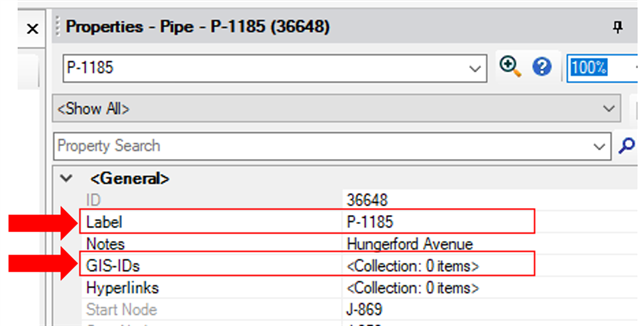 Figure 1 - Label and GIS-ID fields within WaterGEMS application