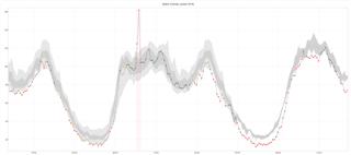 Figure 8. Only one event was generated for the pattern alert. The event starts when values start to go outside the pattern bands and it automatically finishes once returns to normal (to the patterns again).