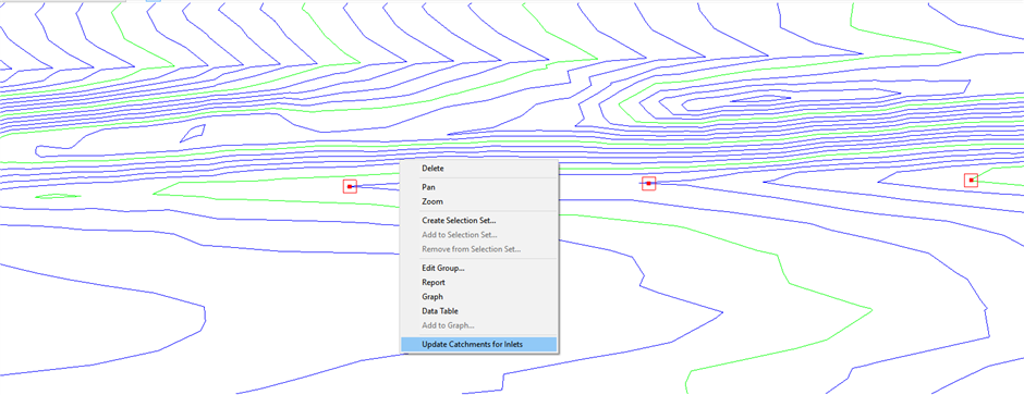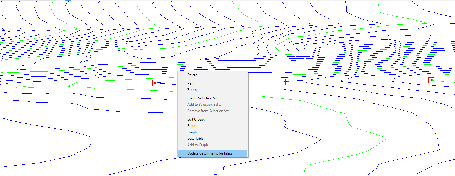 3. Right-click on the downstream inlet (associated with the catchment being divided) and select "Update Catchments for Inlets".