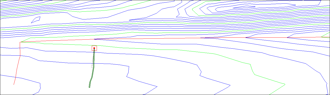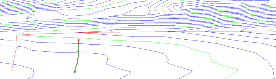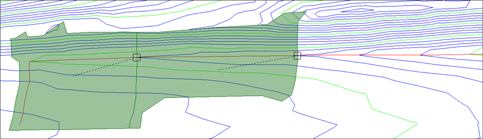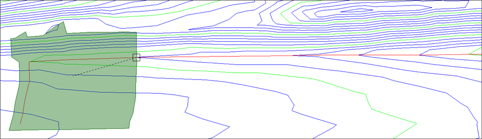 3. In the Terrain Models Manager, select the Downstream Trace button. Use the downstream trace tool to locate the upstream end and to locate where the trace lines drain to.