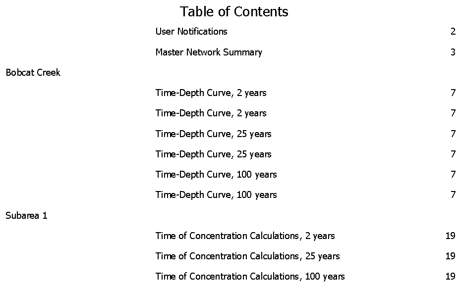 When using PondPack's Report Builder, the table of contents uses the page number of the first page in the section for all subsections.