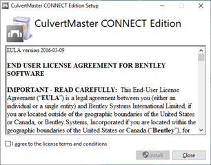 7. Install the products that you will be using. Go to the folder where the downloads are stored (from step 4) and open the installation file which will look like the following (using CulvertMaster as an example):