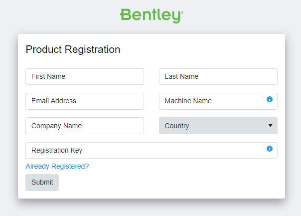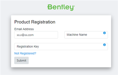 Note: It is very important for the machine name entered to match the machine that the user is actually going to use the software on. If it does not match, the license file will not work, and the user will need to contact Bentley (bipress@Bentley.com) to reset the key. We have provided an informational tip in that field that will instruct a user on how to get the correct machine name. Hover your mouse over the blue "i" icon for help.