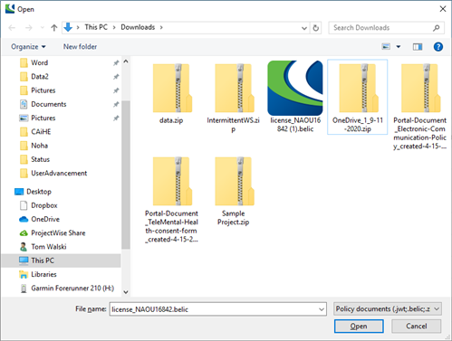 Open the File menu and choose Import Policy File. Chose the license file that you downloaded earlier and select Open.