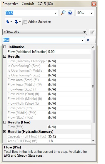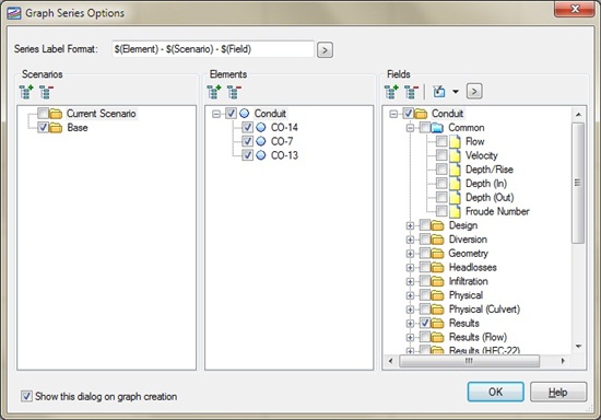 Also, StormCAD offers a new category of common graph properties for each element type to enable the user to quickly find and use the most commonly graphed properties.