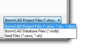 StormCAD now uses the file extension “.stsw” for new projects, and will automatically convert existing projects saved in earlier versions of StormCAD that had used the old file extension (.stc).