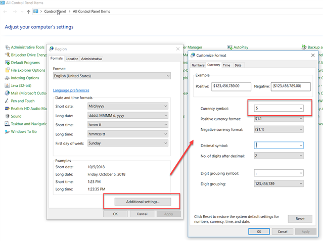 How do I change the currency symbol seen in places like Energy Cost, Energy Management and unit cost of pipes in Darwin Designer? For example from the dollar sign to the Euro sign.