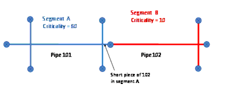 If the criticality analysis has the option "Consider Valves?" disabled, then each segment consists of one and only one pipe as shown below.