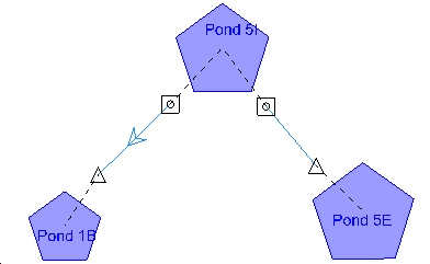 1) For all your ponds that are interconnected check to make sure they only have one pond outlet entrance and one outfall set to a boundary condition type of "boundary element" connected to them.