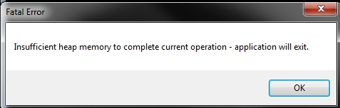 Fatal Error – Insufficient heap memory to complete current operation – application will exit.