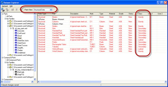 Default values for the type, material and class properties can be set in the DataSet Explorer. One workflow is to set all the beam and column types to gravity as a default allowing the structural engineer to make the choice of changing particular members to lateral in the RSS side. Braces can be set to lateral.