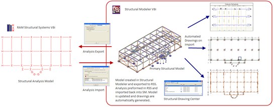 Structural Modeler (SM) is the Bentley BIM application for 3D modeling, discipline coordination and construction drawing generation of structural systems. RAM Structural Systems (RSS) is a Bentley structural analysis application geared toward building design. Each of these applications can be worked in independently, but Structural Modeler provides analytical importing and exporting capabilities allowing the engineering and modeling departments to work closely on a project. Information need not be duplicated and the data can be shared in a designated workflow in order to coordinate design and consolidate a project schedule.