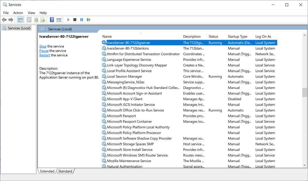 In this example it is “IvaraServer-80-7122tgserver” but your environment these will be named differently and most likely have more services running.