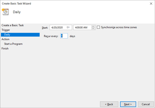 4. Name the task appropriately and select the appropriate frequency, ie Daily and appropriate start time.