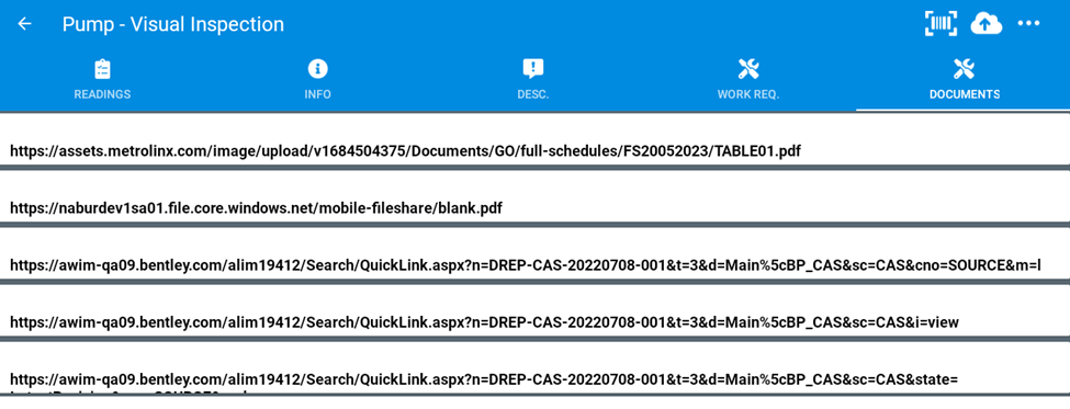 18. Open a checksheet on mobile and view the Documents list. For example.