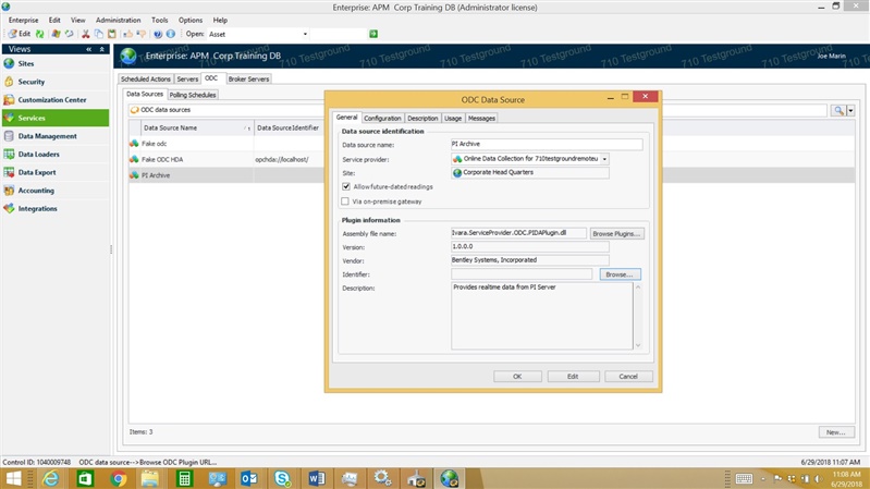 From the enterprise level > Services view > ODC tab. Open the Datasource and click the edit button. Click on the Brwose button beside the "Identifier" field. Remove the username and click ok. Click OK to save the changes to the Datasource. This will force the ODC service using that datasource to use Trust Authentication when accessing PI.