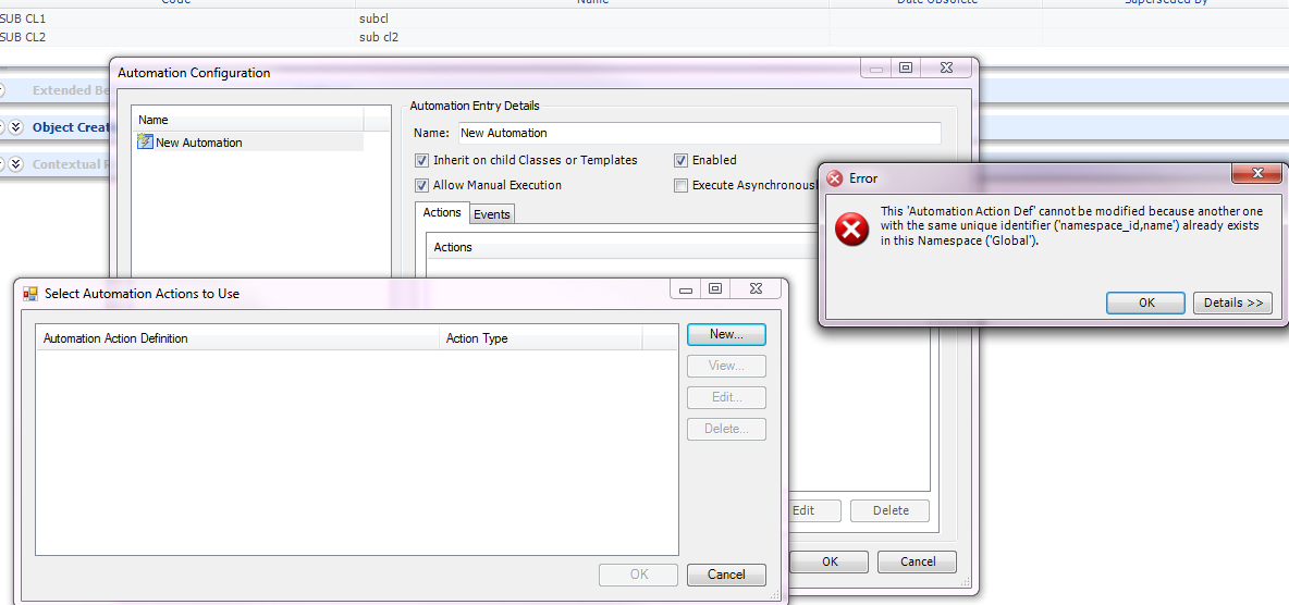 This 'Automation Action Def' cannot be modified because another one with the same unique identifier ('namespace id, name') already exists in this Namespace ('Global').
