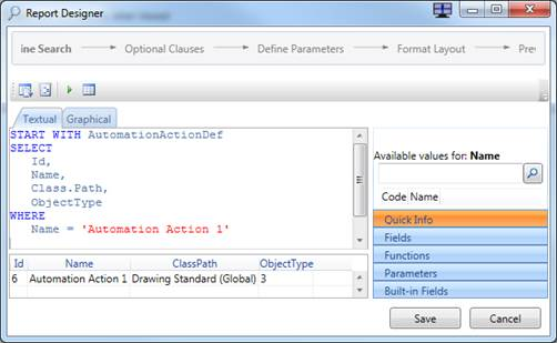 - Create an eQL search to provide a class path in order to locate where the Automation Action definition was defined for deletion in eB Director. For example