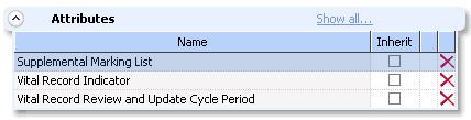 Once the File Plan [component] classes and attribute definition is configured; we embark on defining the actual File Plan schema. In this example ‘Staffing Strategies’ is a File Plan component of type ‘Folder’ and will therefore have attribute instance data of [say] ‘Vital Record Indicator’ stored against it.