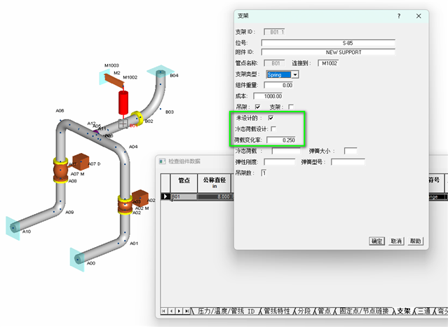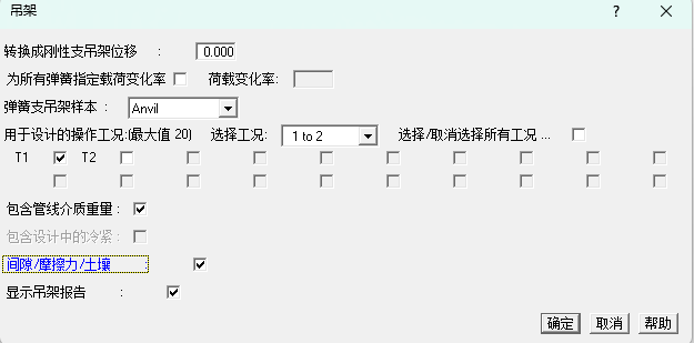 需要注意的是:"转换成刚性支吊架的位置"是指当管点位移小于此值时,吊架将会自动转换位刚性支架。