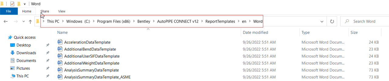 第一步:确认模板储存路径:C:\Program Files (x86)\Bentley\AutoPIPE CONNECT v12\ReportTemplates\en\Word