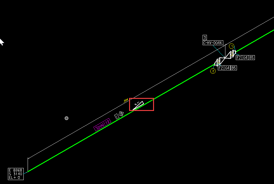 当管线存在坡度时,生成的轴侧图中会对坡度管线在水平以及垂直方向上的投影上进行标注。如下图所示: