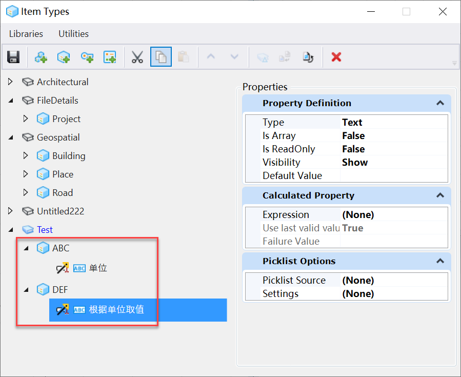 IIF(this.GetItem("DgnCustomItemTypes_Test:ABC")["单位"]="m2","取值为m2", IIF(this.GetItem("DgnCustomItemTypes_Test:ABC")["单位"]="m3","取值为m3","取值为m4"))