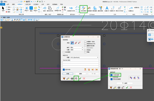 在“修改钢筋→修改钢筋端部详图”的面板中,勾选“勾选的端部”,所选中的钢筋就会显示末端符号,默认为圆弧。